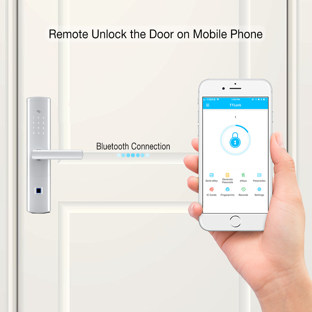2- Соединение Bluetooth, поддержка мобильного телефона APP (TTlock), удаленная открытая дверь, и записи могут быть получены в режиме реального времени на мобильном телефоне.